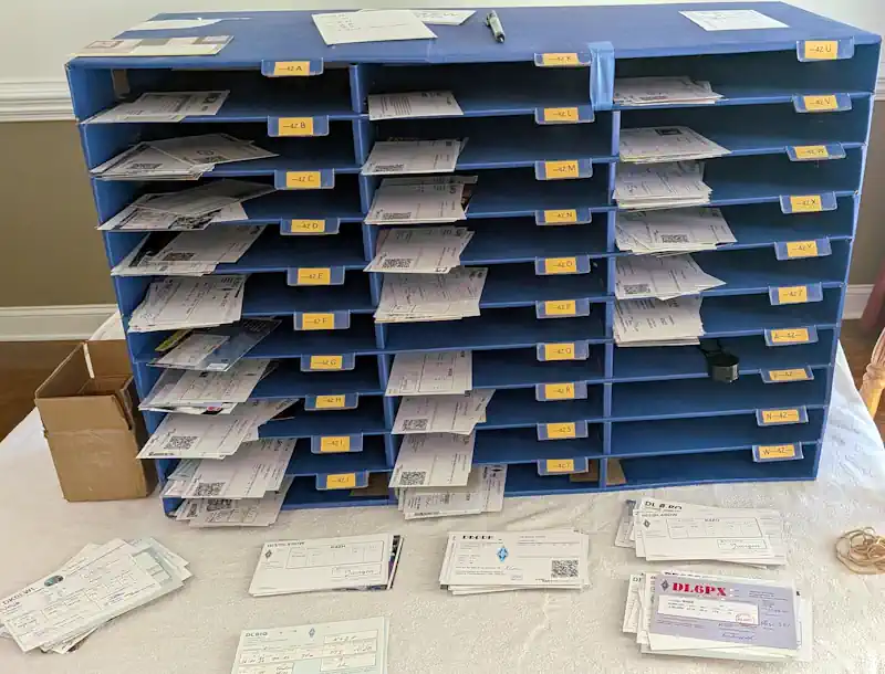 Around 400-450 QSL cards came in to the “Z” sorter a few weeks ago. The preliminary sorting is done. Now the hard work starts.